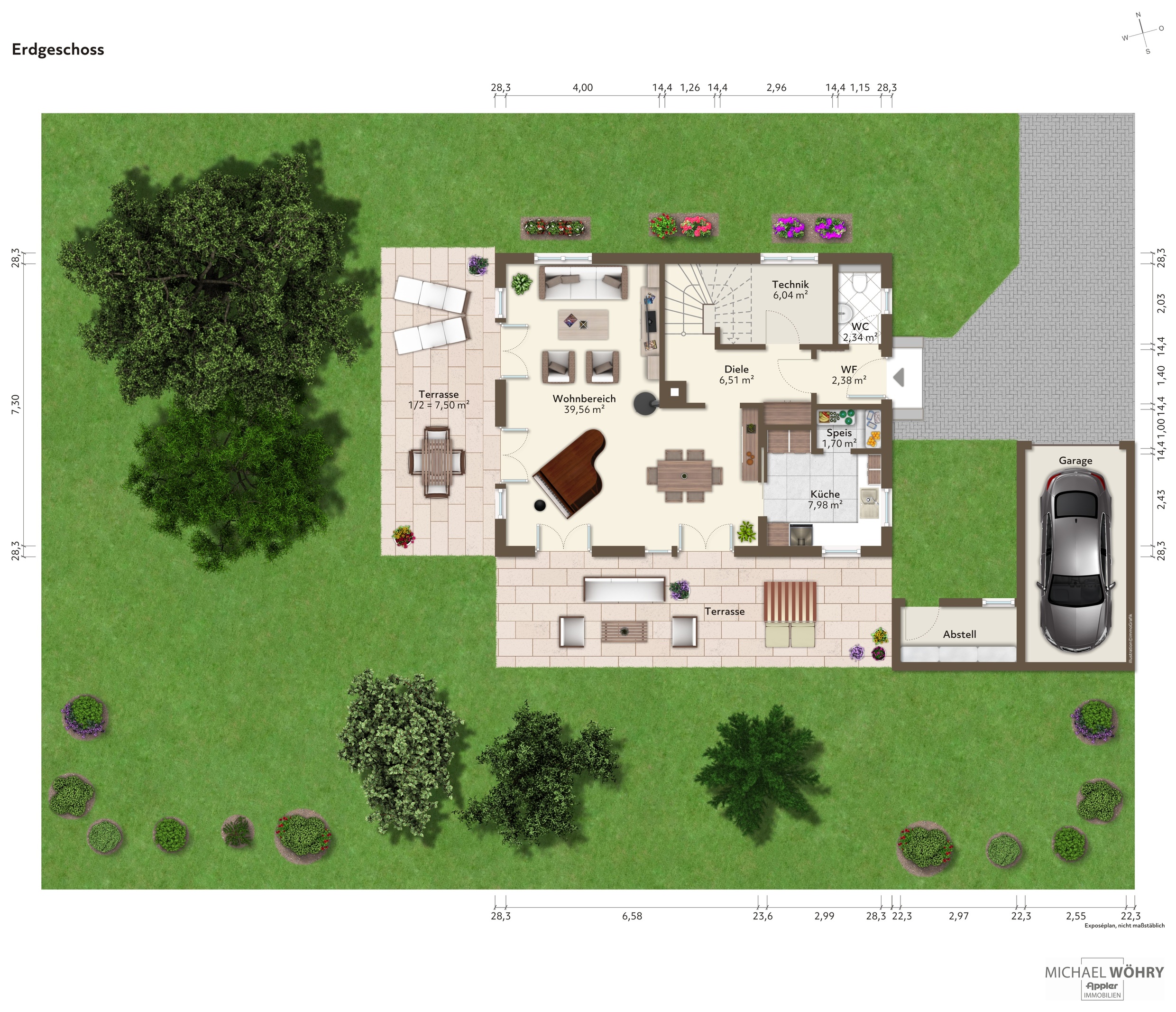 + großer, teils überdachter Terrassenbereich (Süd- & Westausrichtung)