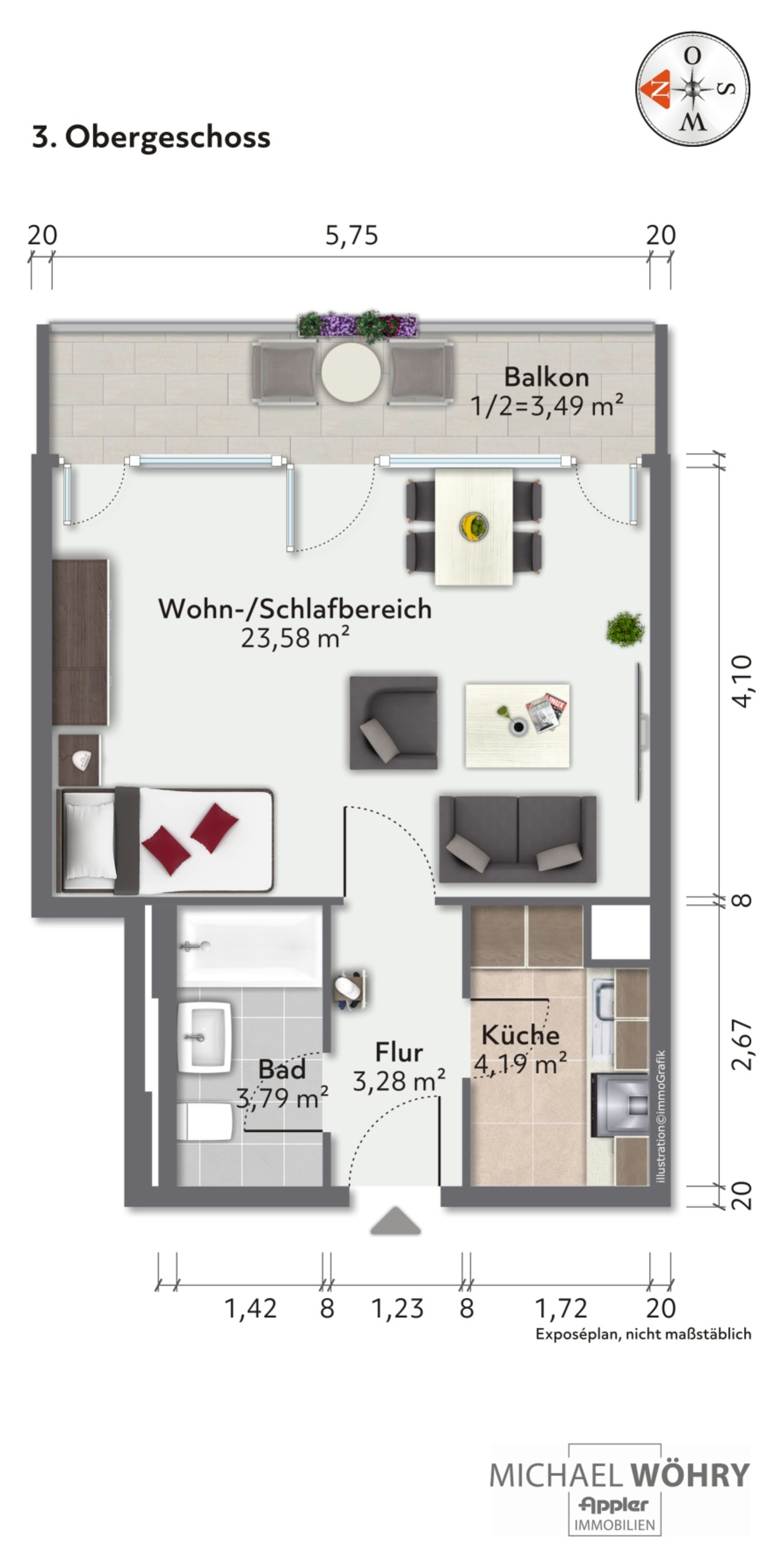 Käufer und Verkäufer verpflichten sich jeweils zur Zahlung einer Provision an die Firma Appler + Wöhry Immobilien i.H.v. 3,57% (inkl. 19% MwSt.) aus dem notariell beurkundeten Kaufpreis. Die Zahlung ist fällig mit Kaufvertragsabschluss.
